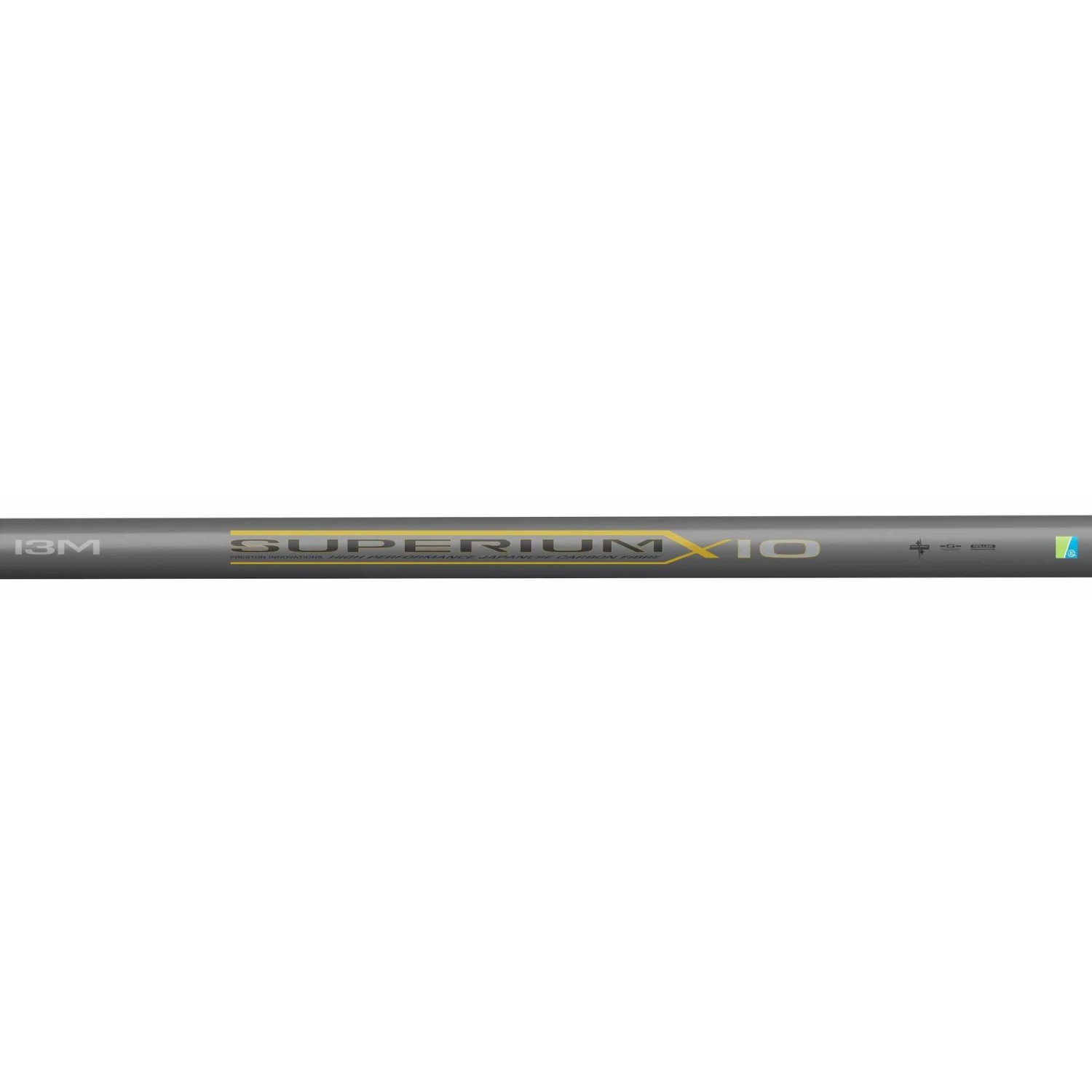 SUPERIUM X10 13M POLESUPERIUM – The evolution of rod technologyThe SUPERIUM family of rods is the culmination of 25 years of experience in rod design and development. Throughout our history, we have constantly learned and developed rod lines to meet modern trends and fishing scenarios. This constant development and thirst for perfection has allowed us to reach the pinnacle of rod design – SUPERIUM! SUPERIUM – Superior kit simplicity! SUPERIUM is a true family of rods that allows you to interchange the top kits, no matter which rod you choose. So if you buy a SUPERIUM X10, your top kits will be interchangeable with our flagship X90 model, and most importantly, the top kits are identical across the range. It was imperative to make sure that each pole would perform at its best. SUPERIUM kits feature the popular Roller Pulla system and come pre-brushed with the appropriate size inner sleeve for the style of kit. The kits also feature the EVA elastic alignment cones that were so important to our Response rods and ensure perfect elastic performance.All top kits also benefit from depth indicators to allow for accurate rod fishing, which is especially important for F1 and shallow water fishing where depth is critical.We’ve also simplified the replacement kit options for SUPERIUM. Nothing is more confusing than looking to buy a rod and being greeted by a jumble of different kits. We looked at what kits were really needed and came up with:Match Kit 2.4m – Two-piece kits with 2.2mm inner rings and a reinforced casing to allow the user to mount a Roller Pulla if needed. Perfect for lightweight elastics on natural waters and commercials.F1 Kit 2.4m (standard and grey) – Two-piece top kits Featuring a 3.7mm inner bushing and pre-fitted with a Roller Pulla. Designed for medium strength elastics, ideal for F1 and small carp. 2.4m Carp Kit – Two-piece kits with a 4mm inner sleeve and pre-fitted with a Roller Pulla. F1 Short Kit (standard and grey) – 1.85m one-piece kit, pre-fitted with a 3.7mm inner sleeve and a Roller Pulla. Developed to target F1 and small carp.SUPERIUM – Japanese Carbon Technology We use only the best Japanese carbon technology to produce the stiffest, strongest and most balanced rods possible. SUPERIUM rods are incredibly responsive, even at long lengths, while offering exceptional strength and durability.SUPERIUM – Modern core designThe RESPONSE core has created some very stiff rods, but we knew we could do SUPERIUM even better! We took what we learned from the RESPONSE mandrel and modified it to produce the stiffest rods possible. The X90, X70, X50 and Carp models are all built on the same chuck. The X90, X70, X50 and Carp models are all built on the same mandrel, while the X30, X20 and X10 models have their own mandrel to ensure optimum performance. All rod top kits are interchangeable, no matter which model you choose, and anglers with Response rods can swap the top 3 sections of their existing rod with any Superium model.SUPERIUM – Built To Last! Durability is paramount when investing in high quality carbon and SUPERIUM features our new joint preservation function – DURA WRAP TECHNOLOGY. This impressive technology is designed to extend the life of the rod’s joints, even under heavy use.DURA WRAP is also present on the butt sections of the rod to harden and strengthen key areas under extreme pressure.SUPERIUM – A Rod for Every OccasionThere’s a SUPERIUM rod designed to excel, no matter what style of fishing you plan to do or your budget. We’ve developed eight models in the SUPERIUM line, and each one is designed to be the best it can be, whether you choose a SUPERIUM MARGIN or a SUPERIUM X90!SUPERIUM – Easy Ship FinishAll SUPERIUM rods feature an Easy Ship Finish that makes handling the rod easy, no matter what weather conditions you’re facing.SUPERIUM – True Length DesignEvery rod in the line measures its true length when the reinforced mini-extension is used. Far from being a gimmick, these super-strong mini extensions prevent damage to expensive butt sections while ensuring you fish at true length.SUPERIUM – Complete KitsFishermen demand complete parts kits, and we’ve designed each parts kit to be the perfect fit for every rod in the family. The flagship SUPERIUM X90 comes with 12 parts kits and each rod comes with a quality SUPERIUM sleeve! SUPERIUM – Downward compatibility! You own a RESPONSE rod? Although we’ve modified the pole chuck, all three top sections of RESPONSE poles fit the SUPERIUM models.SUPERIUM X90The ultimate in pole design. The SUPERIUM X90 is, quite simply, the best pole we’ve ever developed. Incredibly stiff at all lengths, it allows for precise and easy rigging control. The SUPERIUM X90 offers strength and durability previously found only on less expensive rods. The SUPERIUM X90 offers strength and durability previously found only on less expensive rods. A superb rod that is the true flagship of the SUPERIUM series.Superium X90 Package:16m rod with mini extensionAdapter kit included in the rod2 x Match Top 3 Kits (3.95m)2 x Match Top 2 Kits (2.4m)2 x F1 Kits (2.4m)4 x Carp Kits (2.4m)1 x Kup Kit1 x Superium Holdall